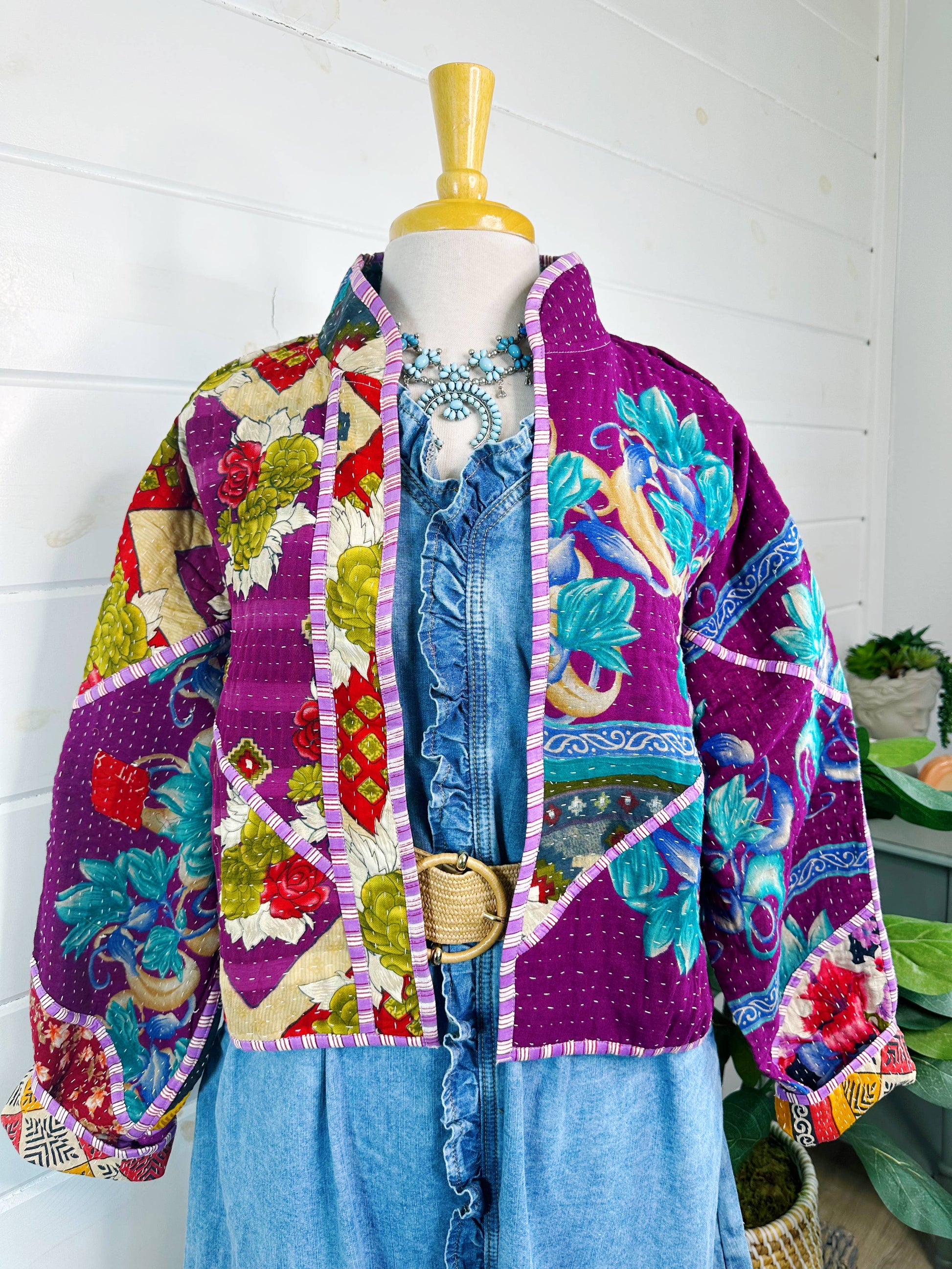 Blanket Coat | Kantha Quilted Bomber Jacket | Patchwork Coat