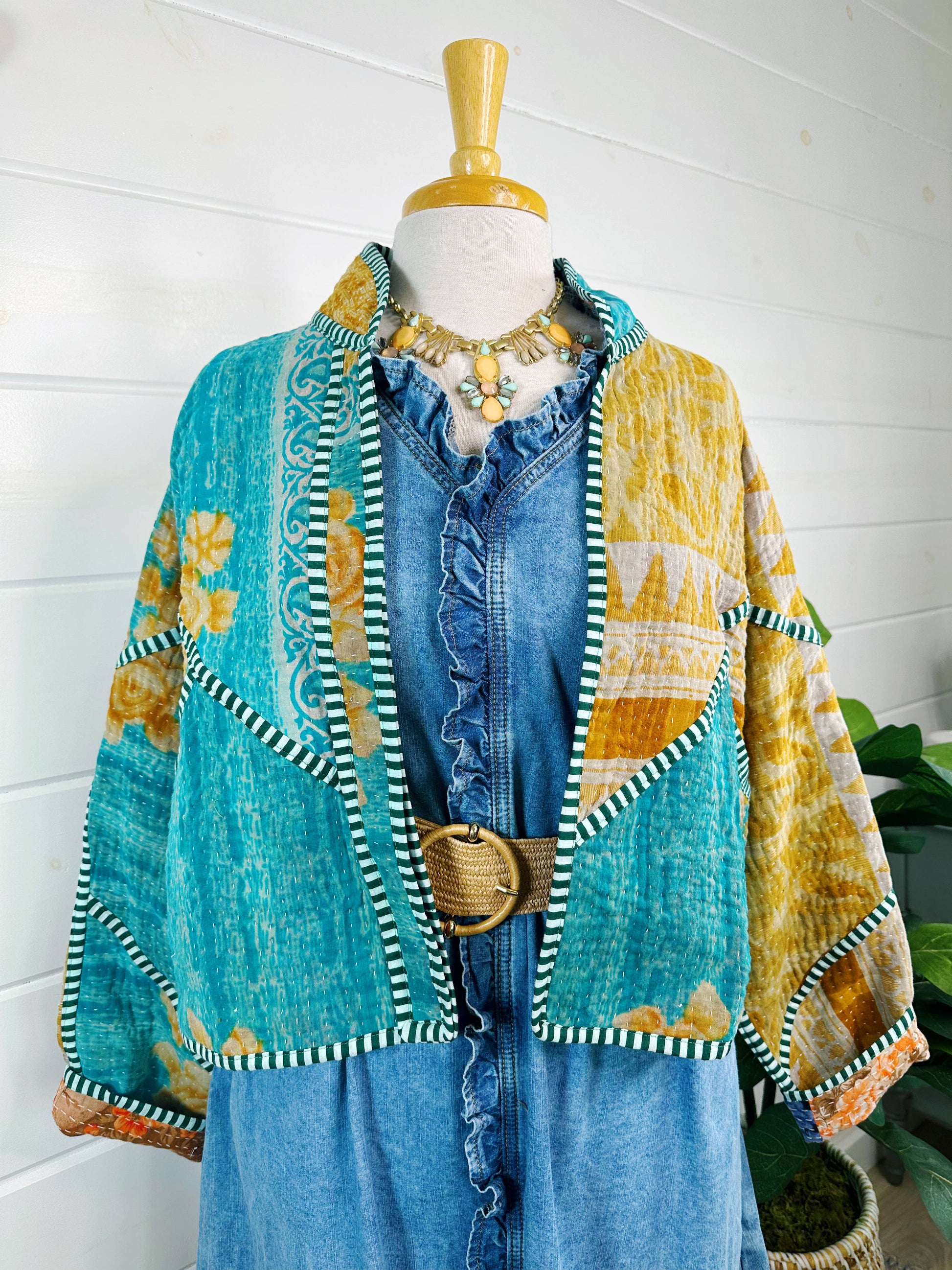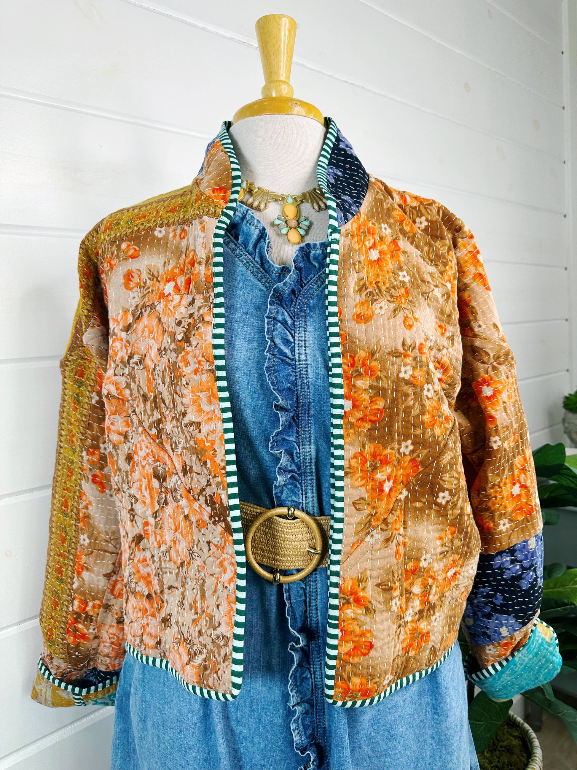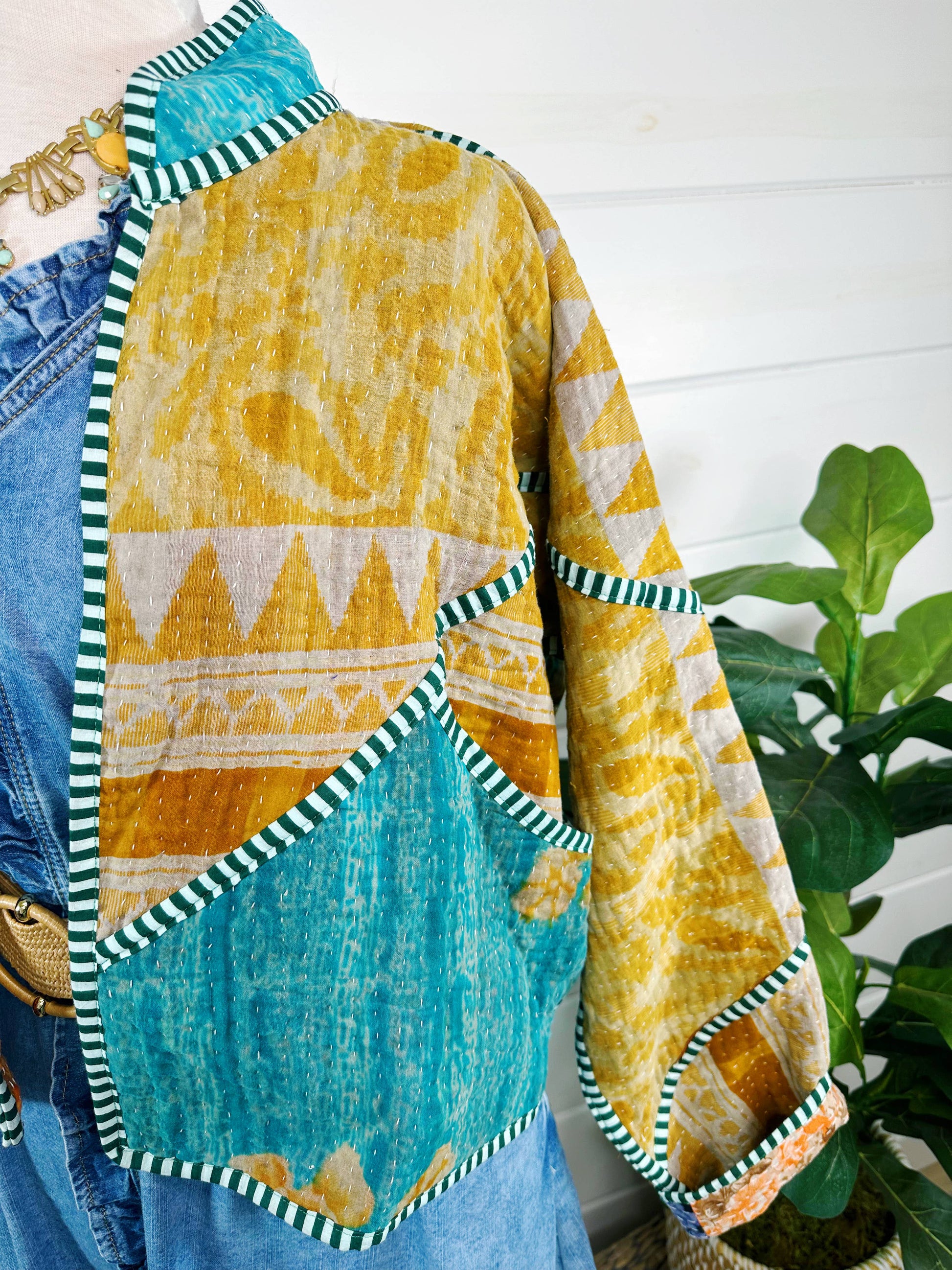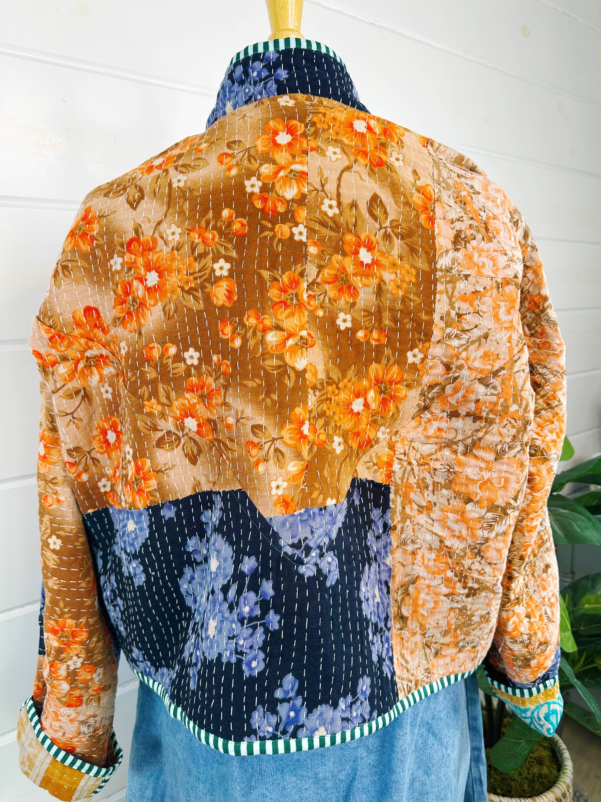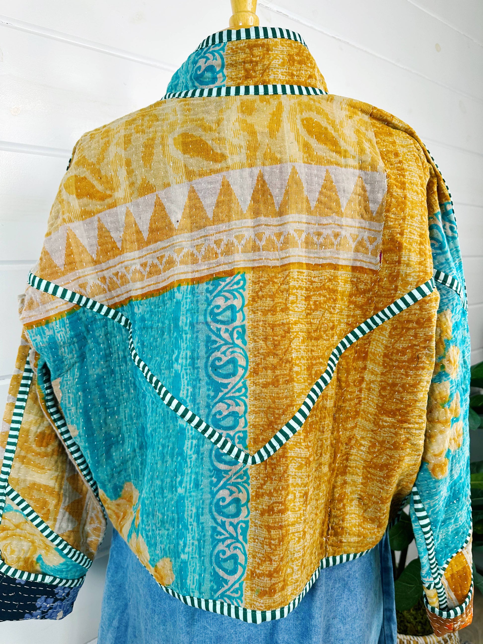 Blanket Coat | Kantha Quilted Bomber Jacket | Patchwork Coat