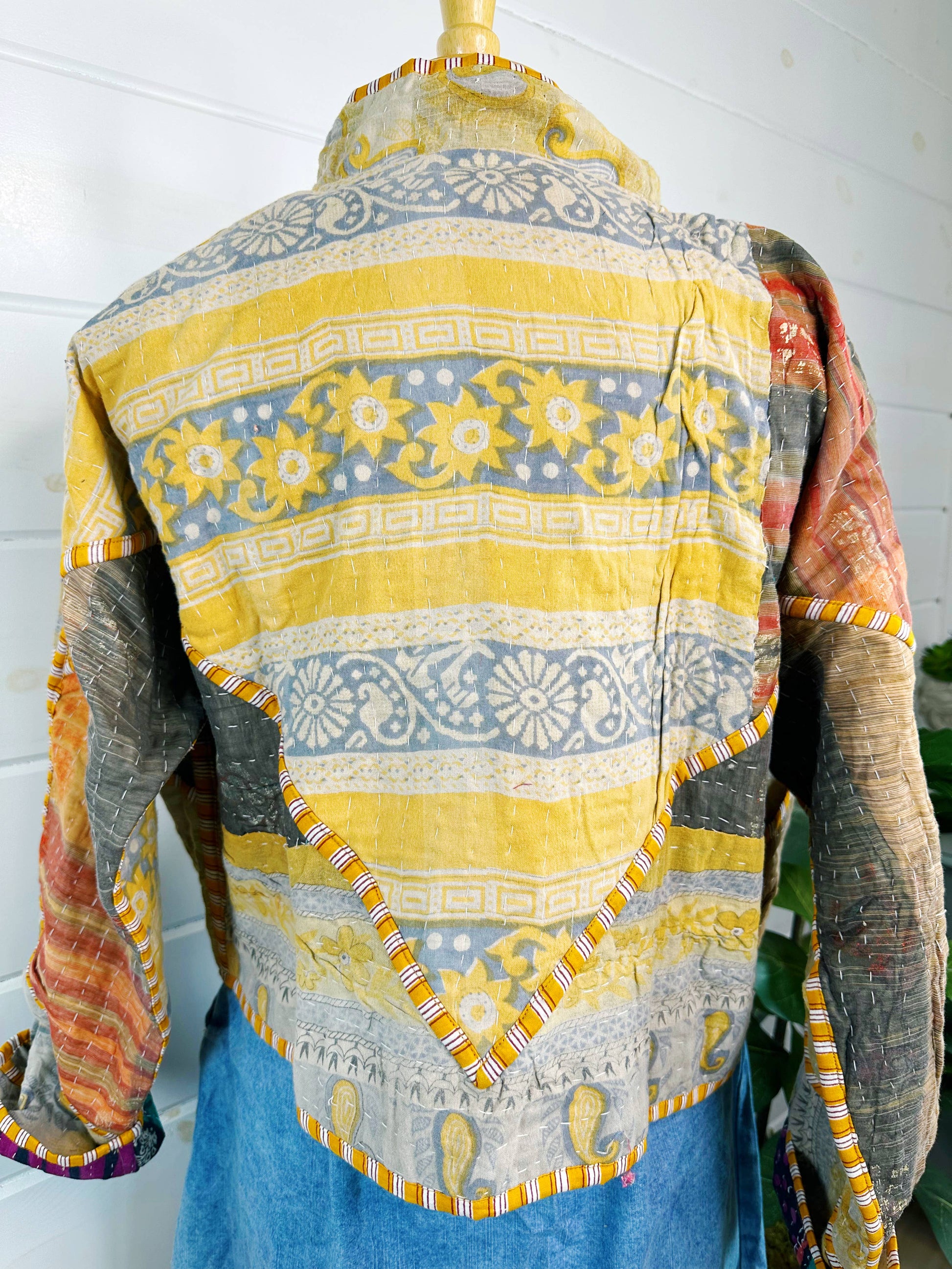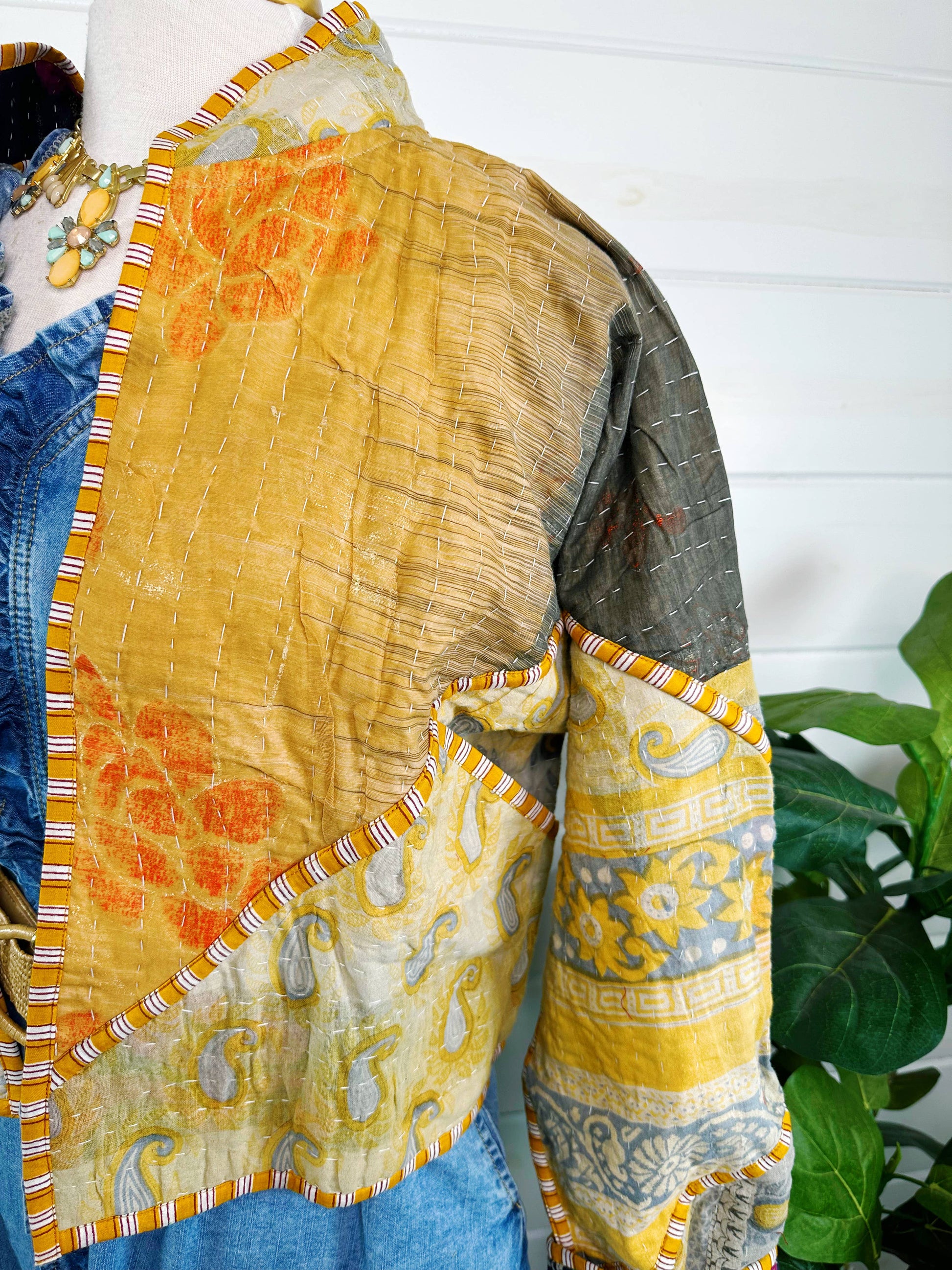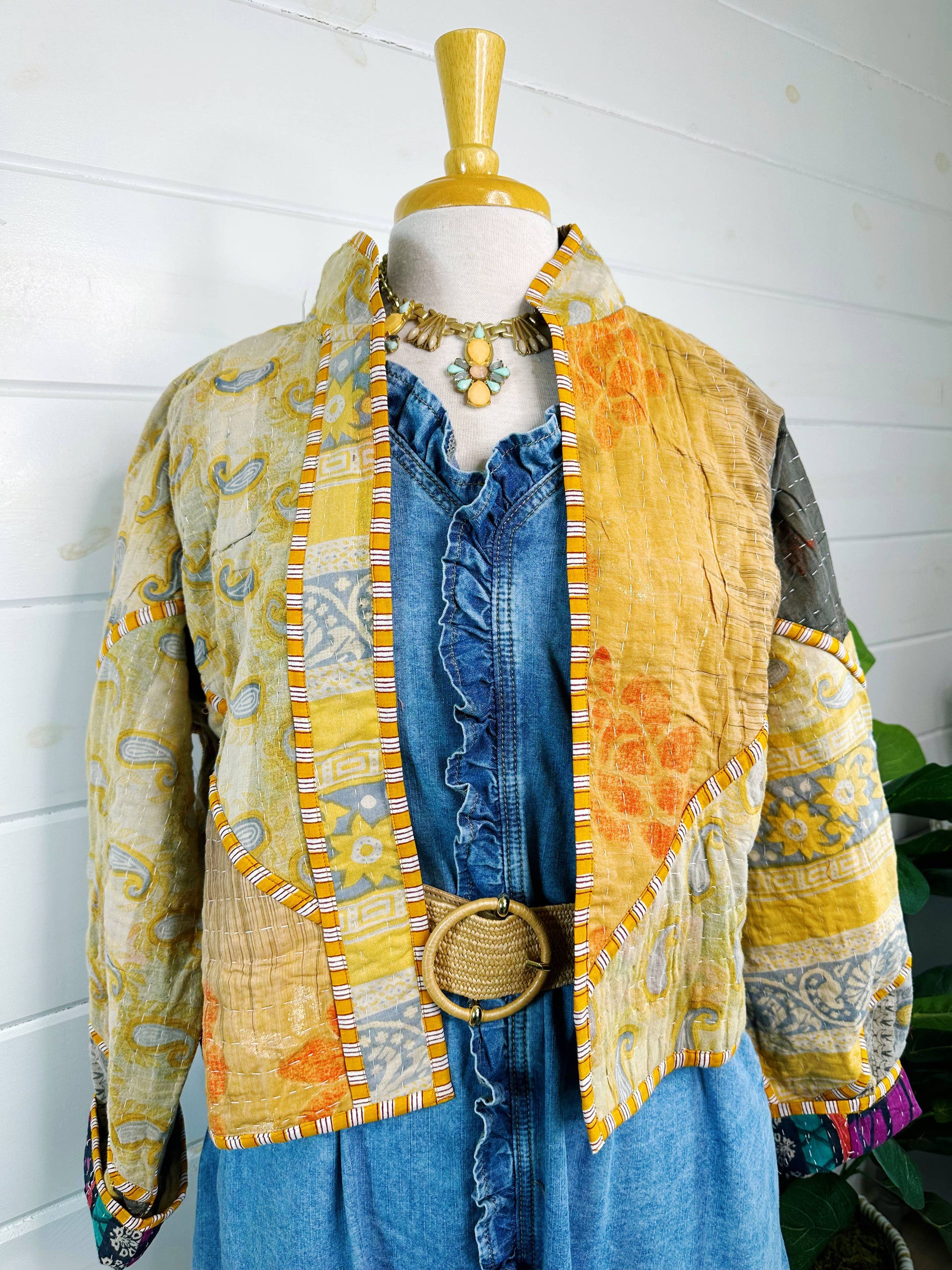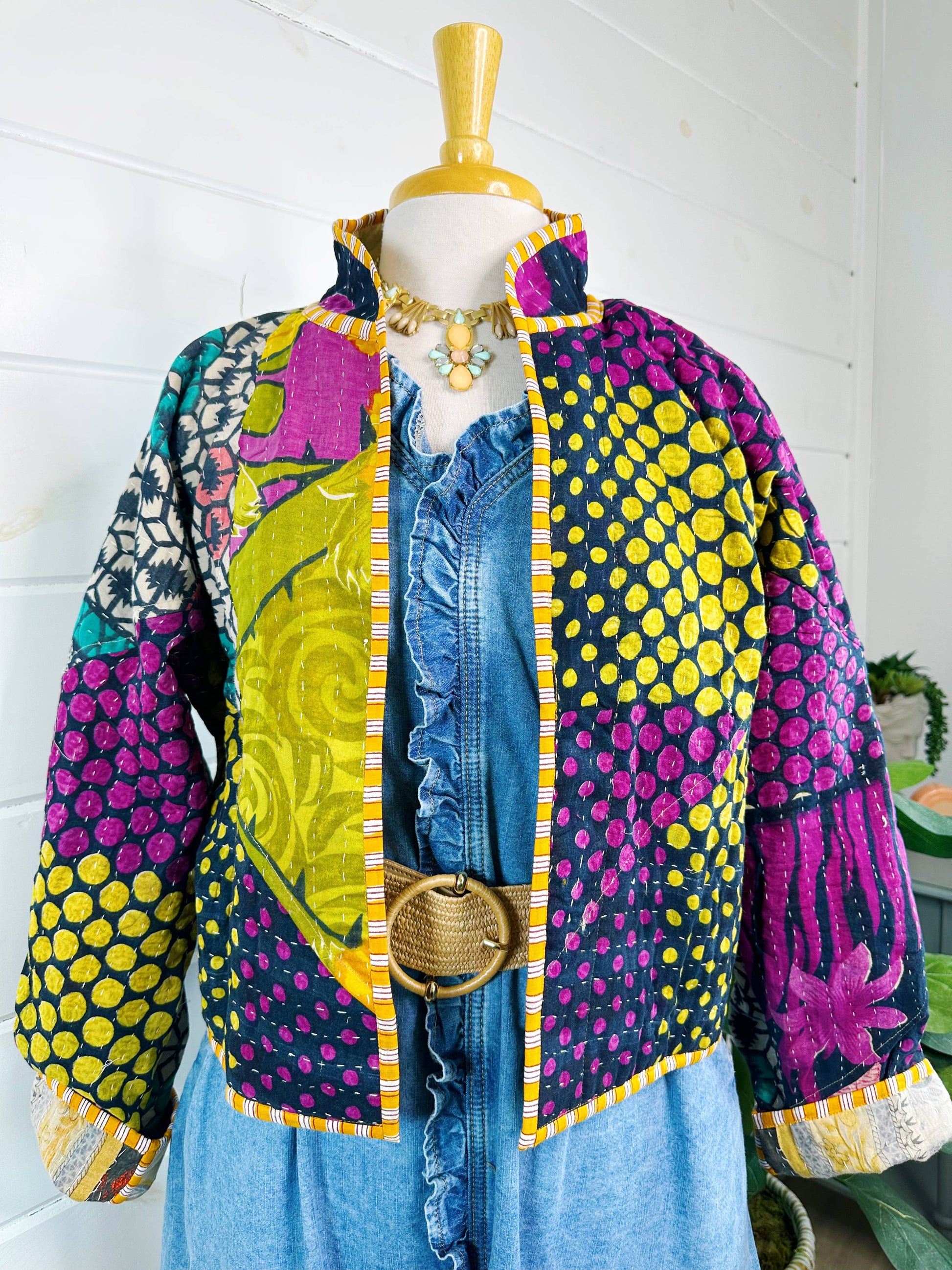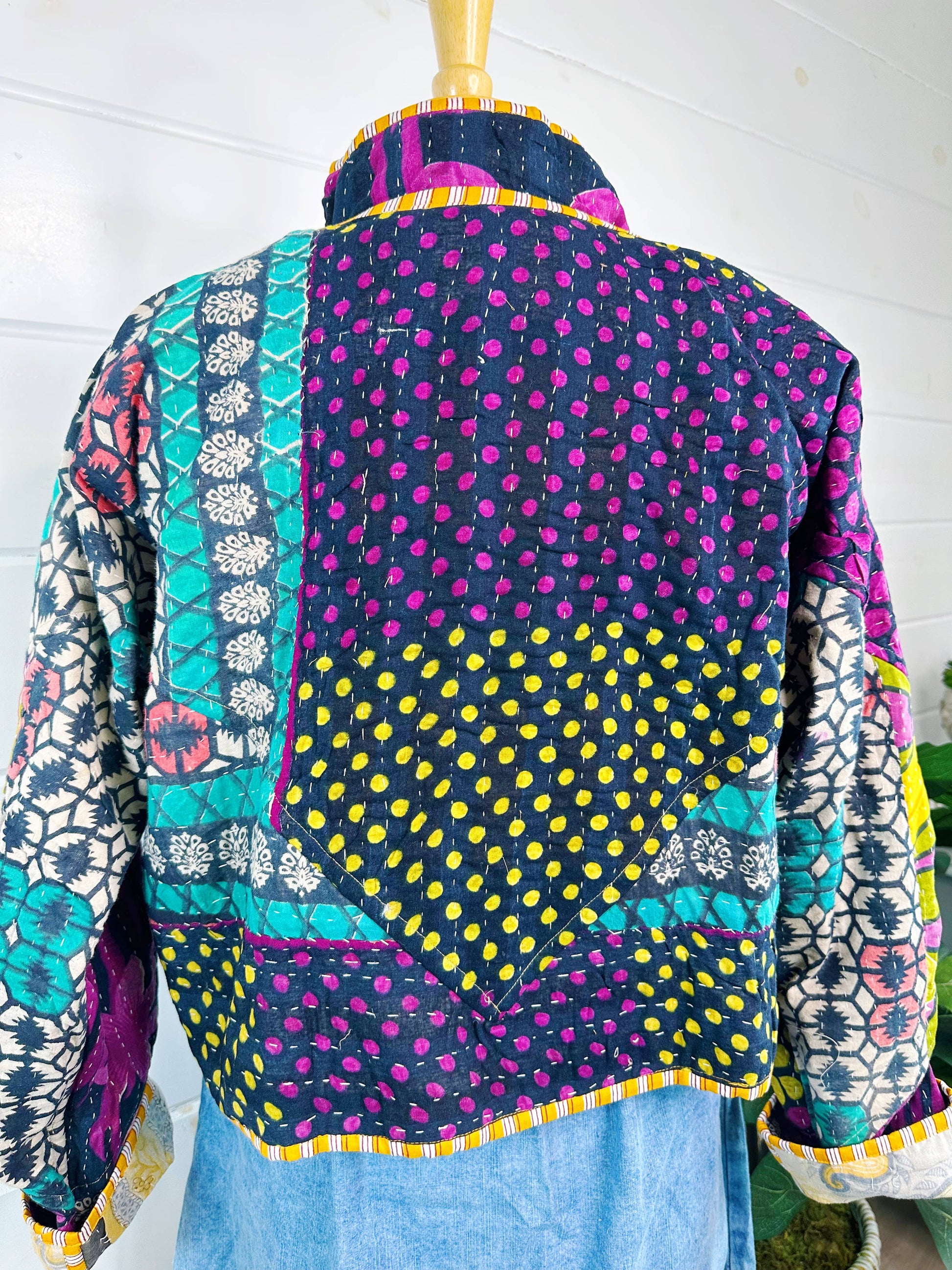 Blanket Coat | Kantha Quilted Bomber Jacket | Patchwork Coat