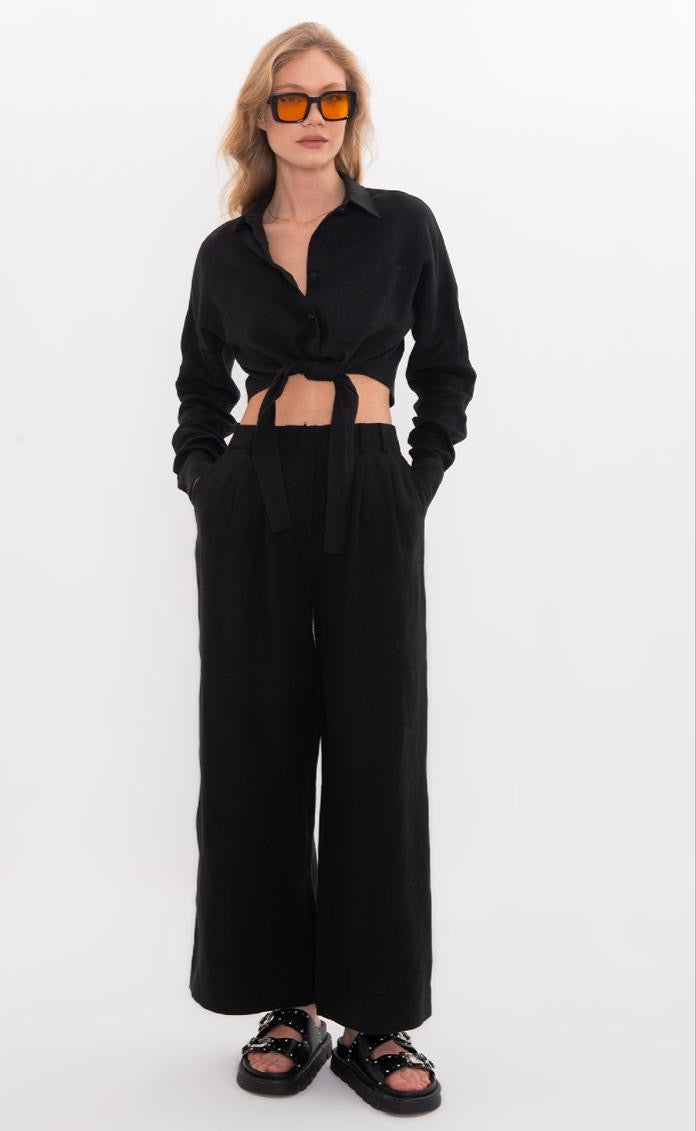 - Cropped Tie Shirt and matching linen trousers. (pants have pockets too!!)