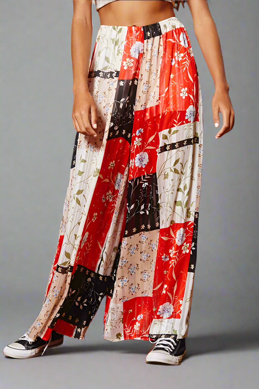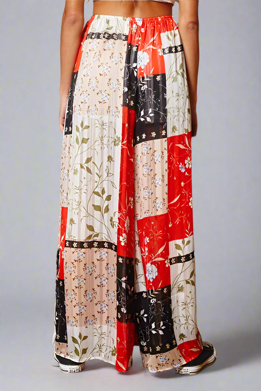 - Crafted with a delicate blend of fabrics and featuring a floral print, these sheer lurex fabric pants offer a comfortable and flowy fit.