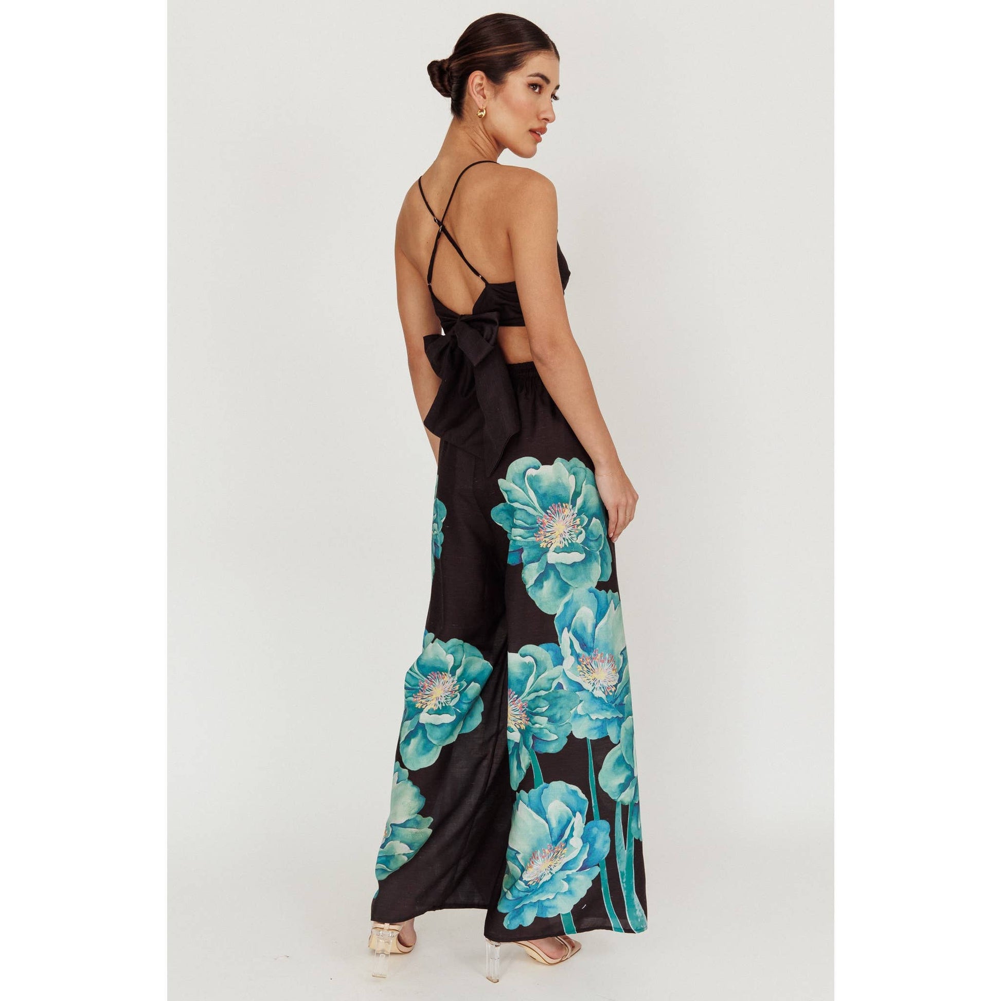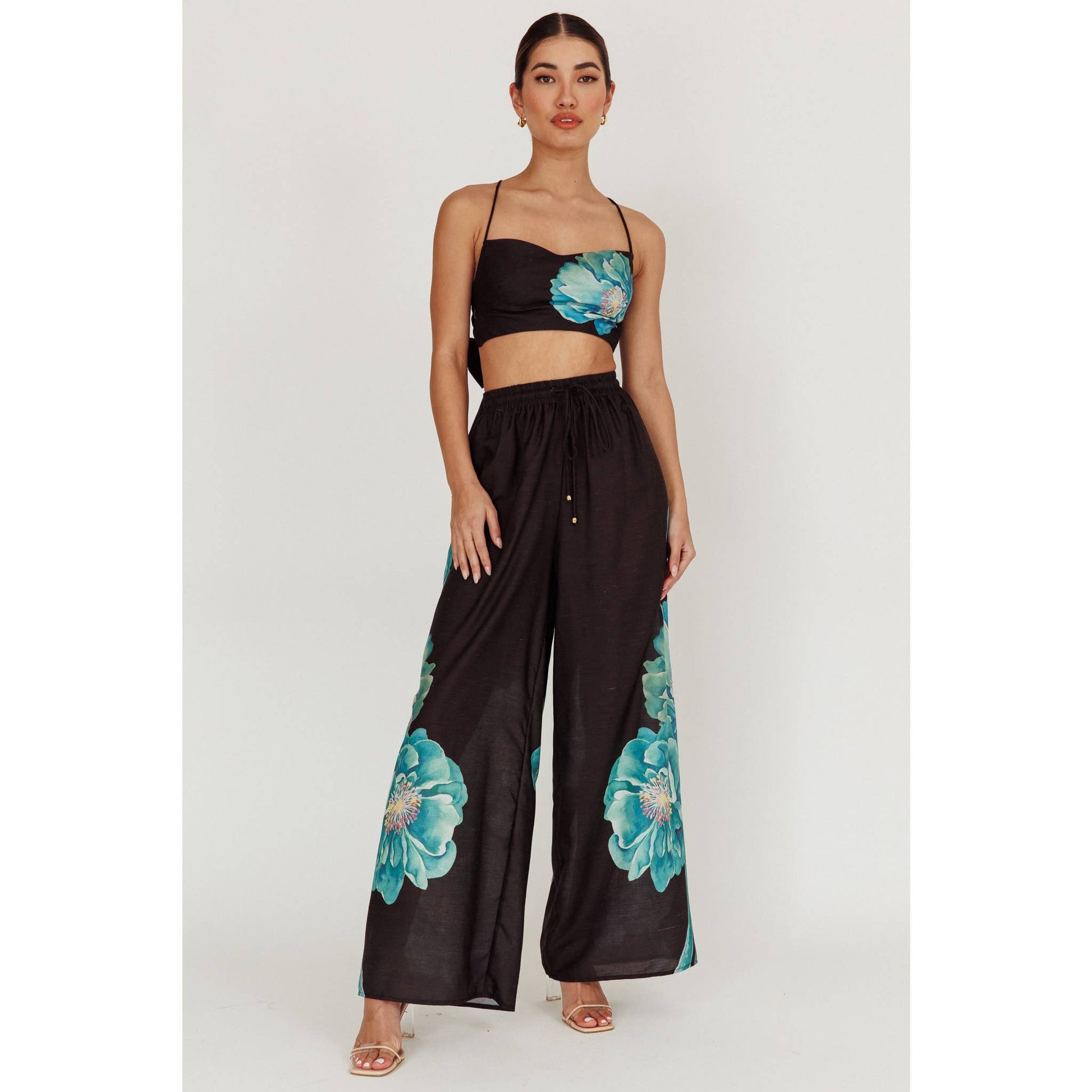 TWO PIECE FLORAL BRA TOP AND PANTS SET